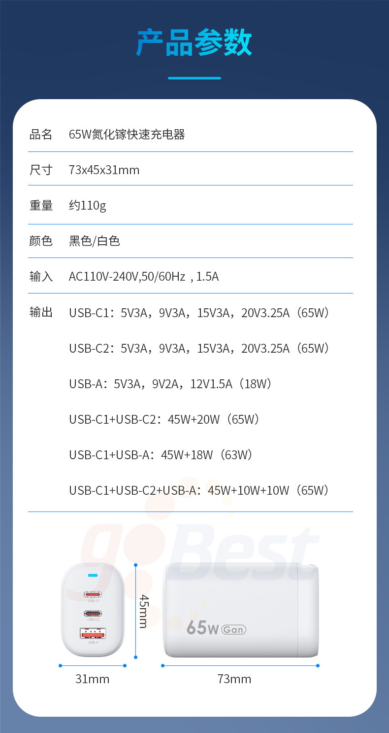 輸出功率:65W