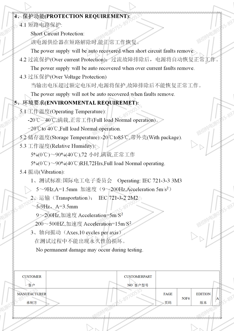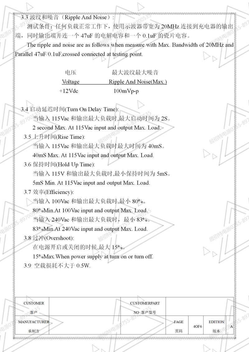 12V1.25A電源適配器規(guī)格書(桌面式)